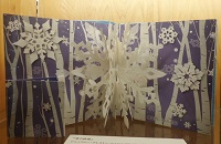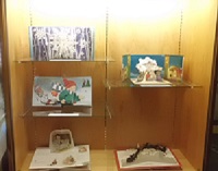 絵が立体的に飛び出したり、つまみを引っ張るとしかけが動く楽しい絵本を展示します。